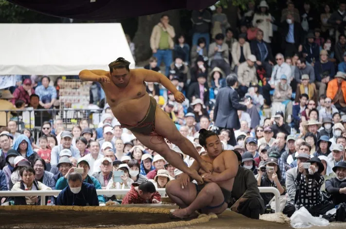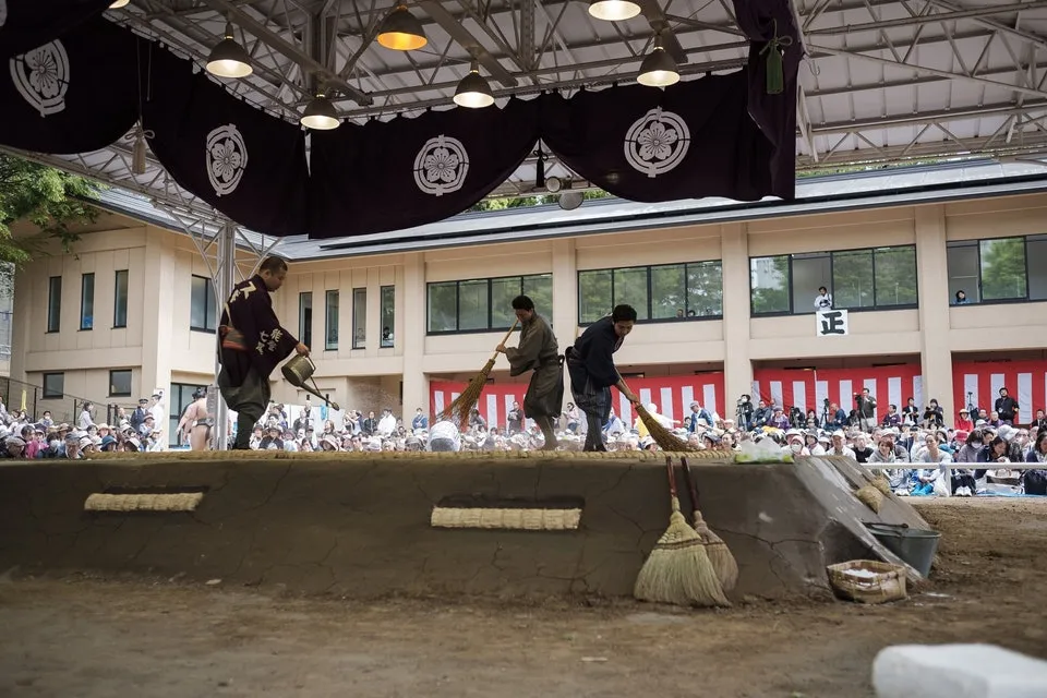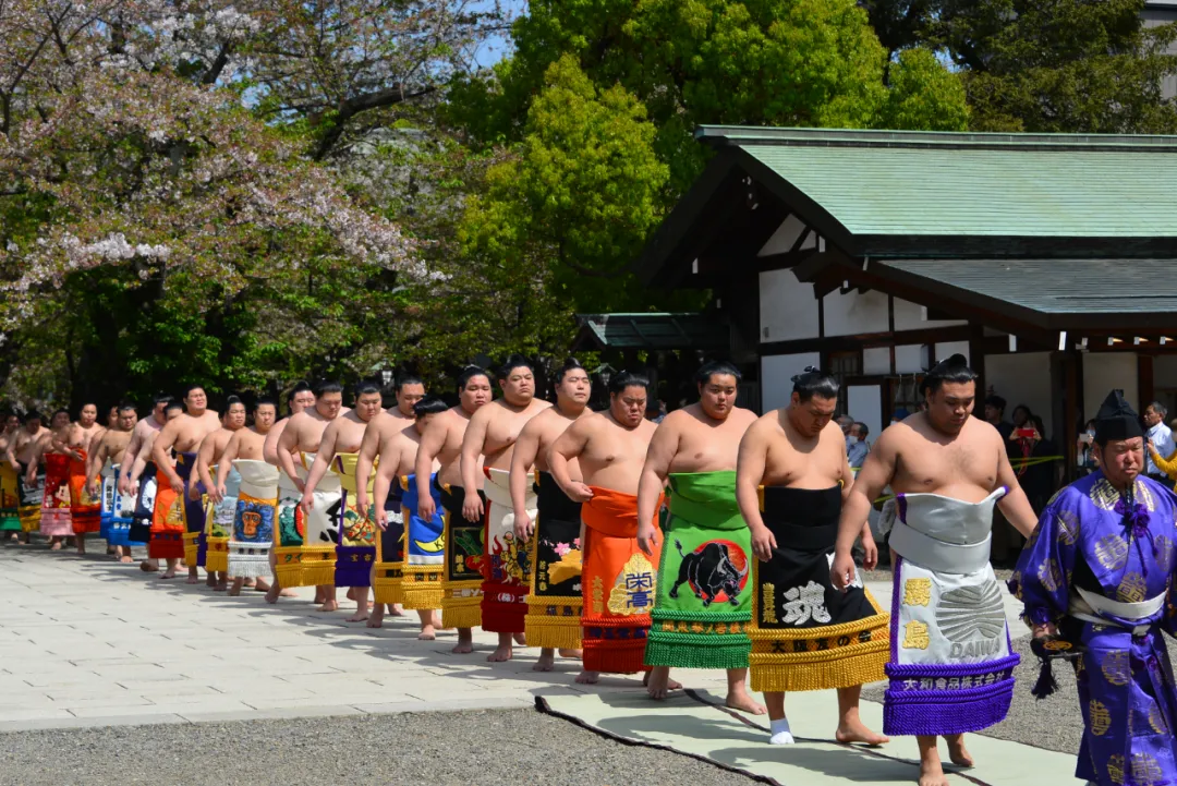 自从1869年靖国神社镇座祭(祭典仪式)期间举行大相扑奉纳比赛以来,在每年的例行大祭上,以横纲为首的相扑力士都会举行奉纳相扑比赛。这一天,相扑场吸引无数观众前来观看,场面热闹非凡。(免费观看)