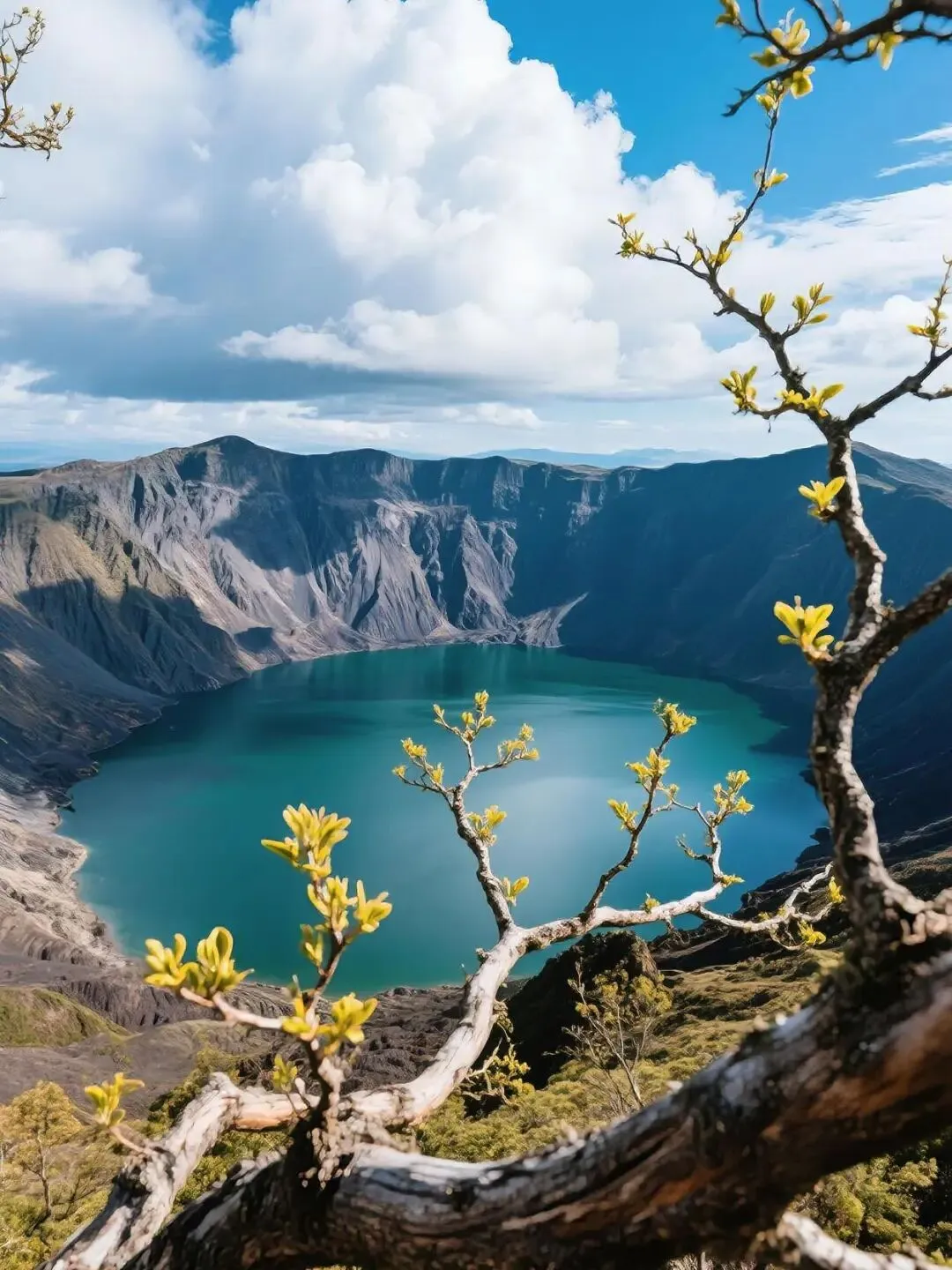 火山脱下外套,露出黑曜石的胸膛;十四颗熔岩纽扣,掉在地上就变成湖。泉水从地心一路冷嘶,喝到嘴里仍带着熄灭的火舌,像把旧年的爆鸣含成一颗凉糖。