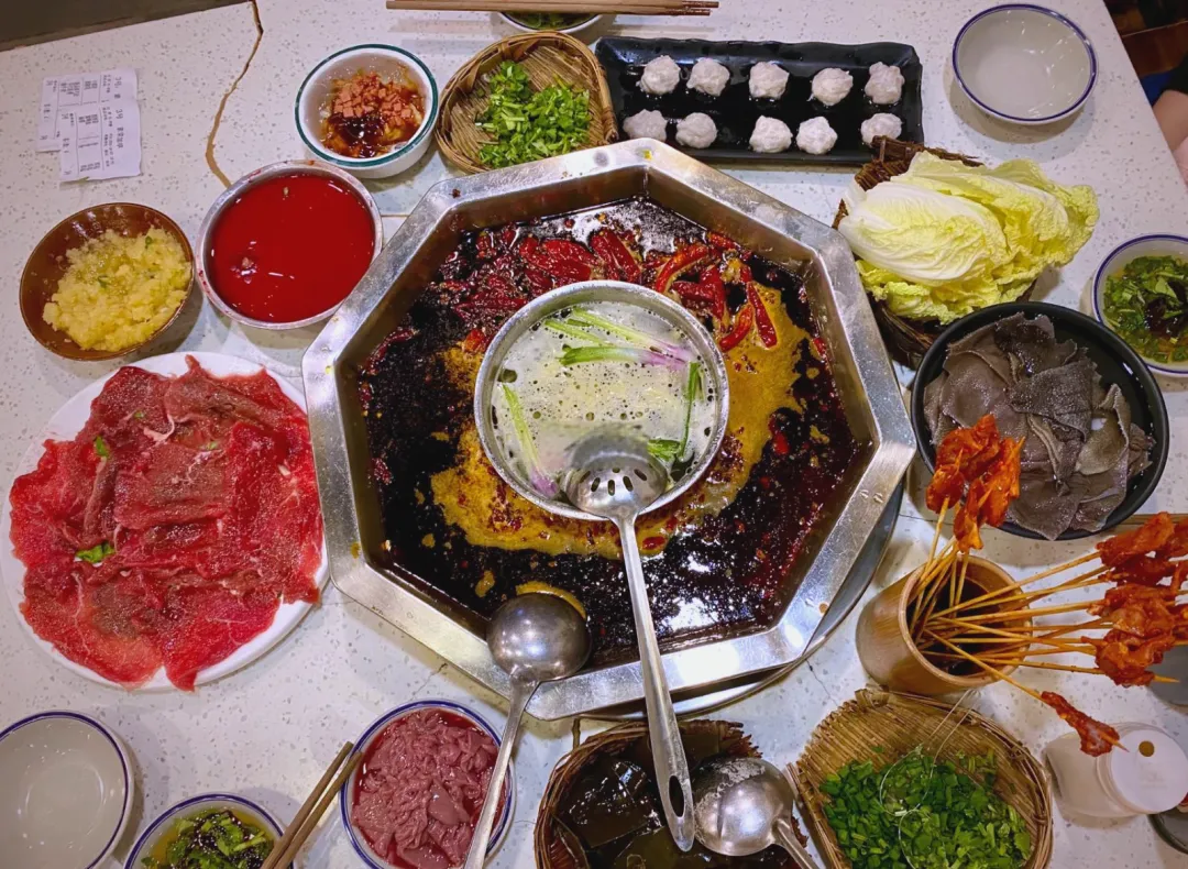 所以,当我第一次面对重庆的“九宫格老火锅”时,我是生理性抗拒的。那哪是汤啊,那分明就是一锅烧开的红油!辣椒、花椒飘满了一锅,看着就胃疼。而且,没有芝麻酱!只有香油蒜泥!