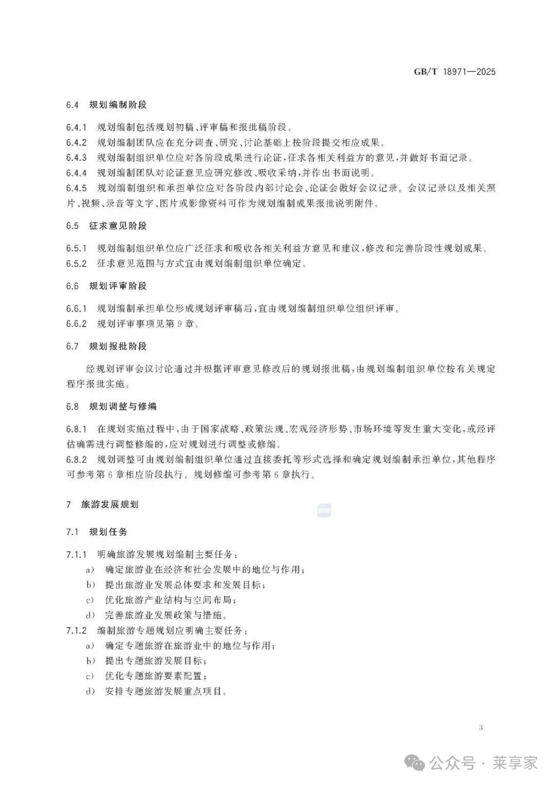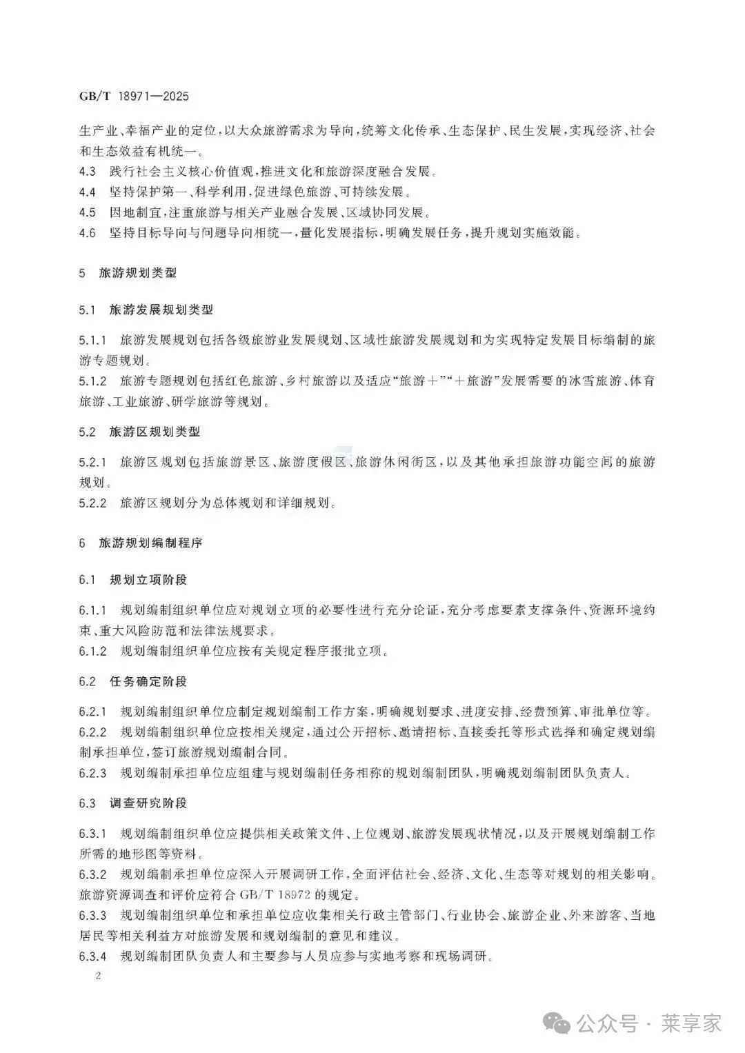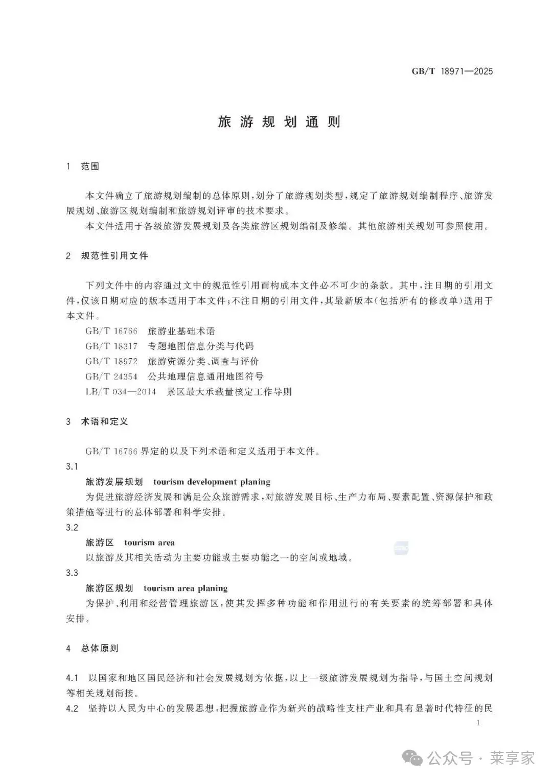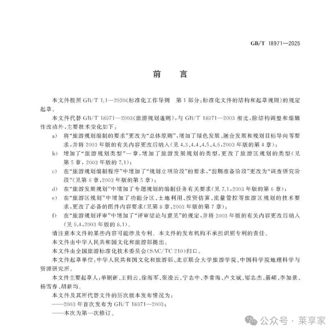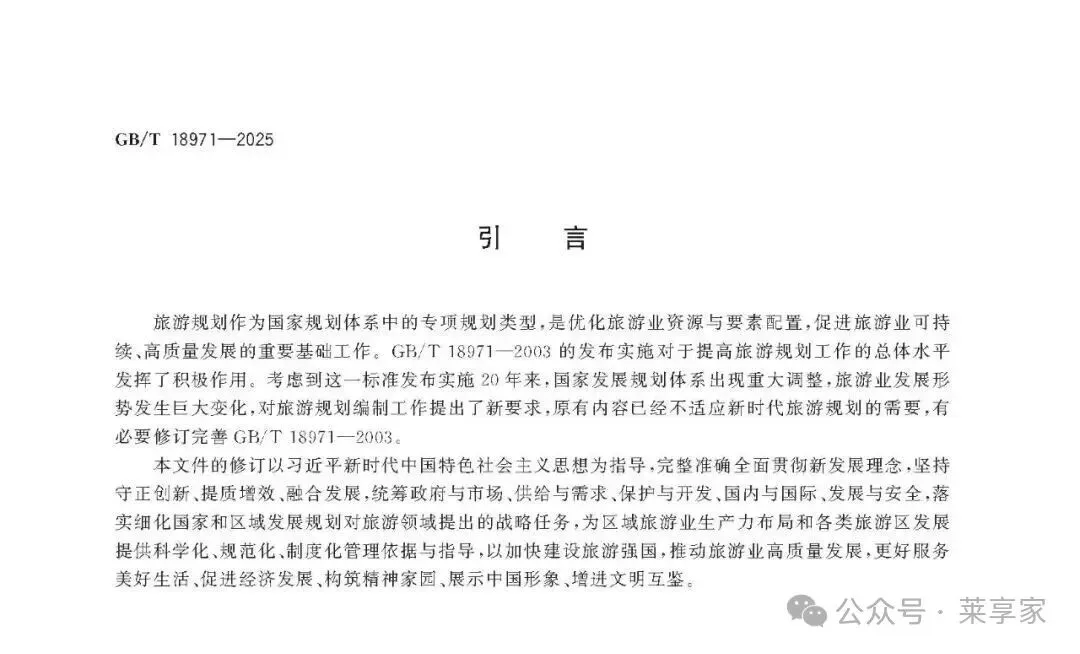 近日,国家市场监督管理总局(国家标准化管理委员会)批准发布360项推荐性国家标准,其中文旅领域的核心指导性文件——《旅游规划通则》(GB/T18971-2025)引发全行业高度关注。该标准将于2026年4月1日起正式实施,全面替代2003年旧版标准。因其直接关联景区建设、产业布局、游客体验,被业内视为“未来5年旅游投资与开发的风向标”。