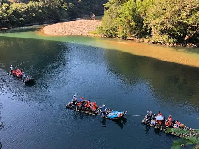 我自己去武夷山的时候,那条九曲溪上漂流,水不急,人也不多,就是很安静。
