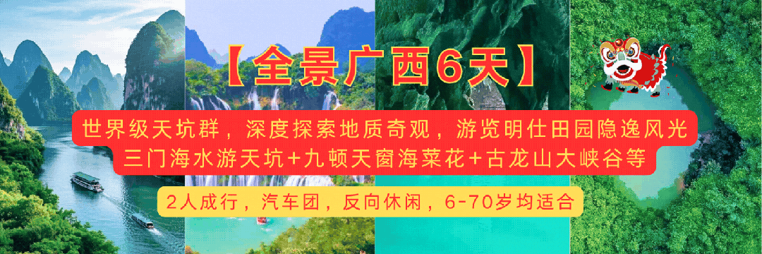 【全景广西6天】涵盖喀斯特地貌精华,适合深度体验。