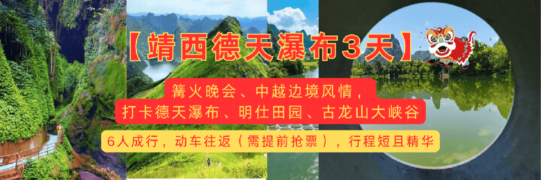 动车短途游,聚焦德天瀑布、明仕田园竹筏、古龙山大峡谷漂流及锦绣古镇夜游