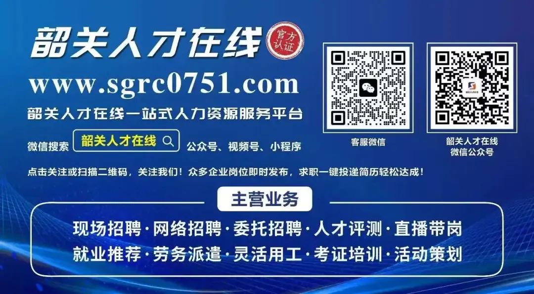 关注公众号【韶关人才在线】↓