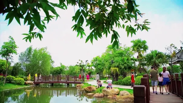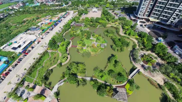 中山湿地公园是“港口八景·湿地映翠”所在地,位于中山市港口镇港口大道森里上城V-PARK旁,是一个以“水文化”为主题的生态湿地公园,以“一轴四园”为构思,以“水—文化—生态”为主题,由文化广场区、源泉园、景观园、岭南园等四大区域组成,玉带桥、观景楼、湖心岛等景点在此相互辉映,展现岭南园林的优美景致。