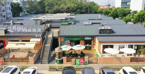 青玉立坊前身是废置多年的工厂员工宿舍区,改造过程秉持人与自然“共榕共生”的创新理念,精心雕琢。园区内,60多株姿态各异、形态优美的老榕树错落分布,它们繁茂的枝叶肆意伸展,与园区简约大气的建筑风格相互映衬,相得益彰。上上签、象角群记、路环咖啡等网红餐饮连锁品牌纷纷进驻,让青玉立坊一跃成为港口及周边镇街年轻人趋之若鹜的游玩、创业、消费新地标,承载着无数人的欢乐时光与梦想追求。