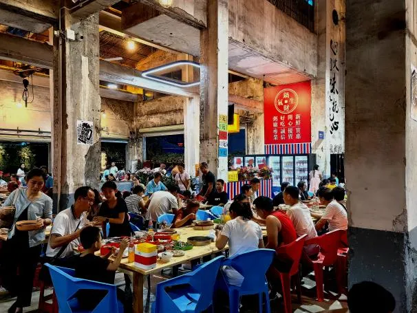 港福路宵夜街位于中山市港口镇世纪西路和美景西路之间,自发形成于上世纪80年代,贯穿港口镇中心区域,北接世纪西路,南连美景东路,是一条充盈着地道美食魅力、市井文化气息、城市发展印迹的特色街区,是中山、广东乃至大湾区最具烟火气的宵夜美食街之一。夜晚这里灯火通明、烟火气十足,约上看球好友,品美食、聊赛事,性价比超高,能沉浸式感受港口的烟火风情。