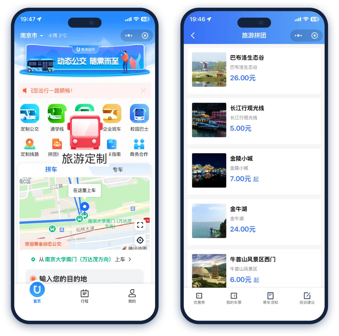 🚌案例一:南京旅游线路预约公交,拼团直达金陵美景