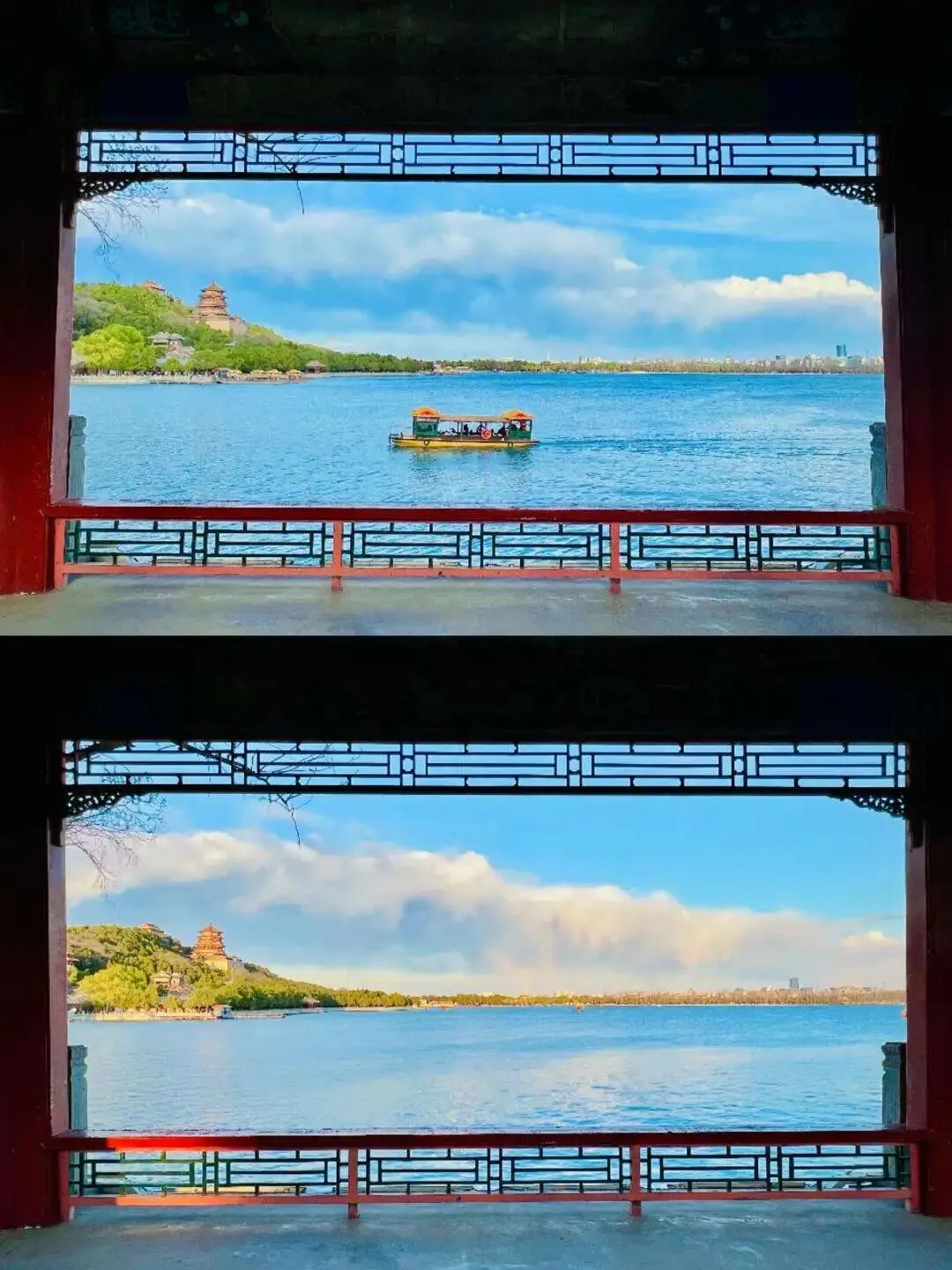 绕开.人流如织的.中轴线.,往西堤和耕.织图走走.。.下午.四点后入园.,门.票半价,昆明湖.上的.风吹过.来,带着水汽,.岸边.柳枝低垂,你能看到本地.大爷在.长廊下唱.戏。.那.十七孔桥的落.日.,金灿.灿地.铺满.水.面,不要钱。