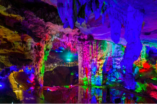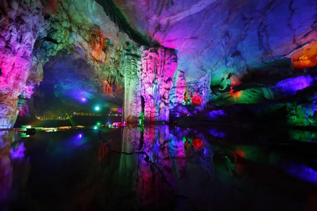 简介:5A级景区,三层喀斯特溶洞恒温18℃,乘船穿越1.5公里暗河,钟乳石“莲花宝座”“瀑布帘”堪称地质奇观。