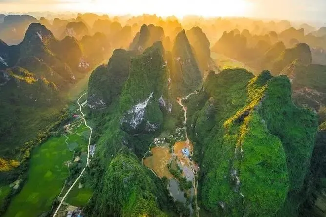 简介:喀斯特地貌峰林如笋,山水相映,适合骑行、露营与皮划艇,周边有峰林小镇提供森林房与热气球体验。