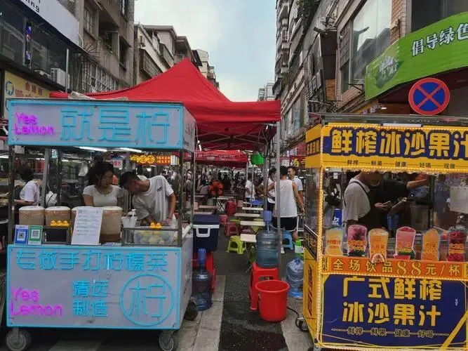 玩法:傍晚至夜间人流密集,推荐尝试“天下肠粉”“发财泰式茶摊”等网红摊位
