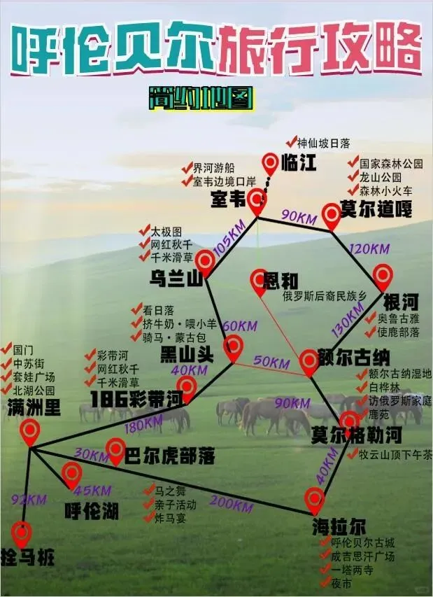 D.3:边防卡线(九卡、七.卡、五卡). → 黑山头(.骑马、.访牧户) .→ .宿蒙古包