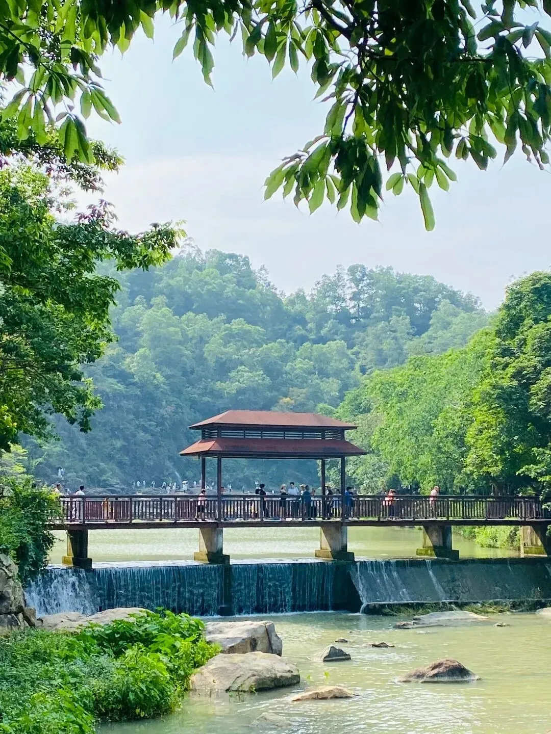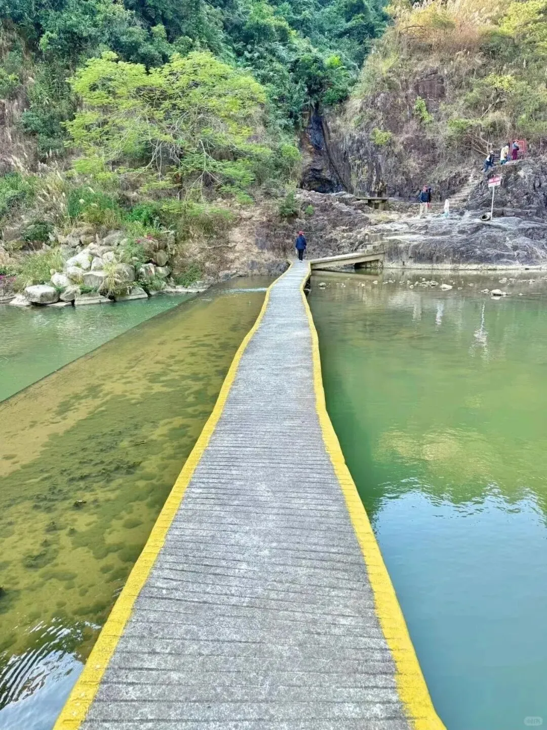 在谷里走,两边是火山岩,底下是清溪水,大石头上就着水劲儿冲出了无数个石臼,圆的、深的、连着的,跟外星人拿机关枪扫射的弹坑似的。这里头还是电影《羞羞的铁拳》取景地,沈腾他们就在这儿拍的。你来这儿,同款飘逸感立马就有了。
