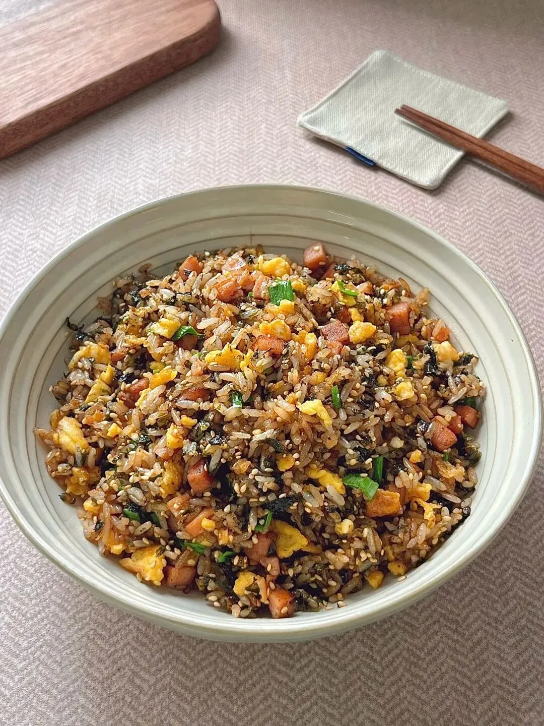 紫菜炒饭——海山是华南重要紫菜基地,这紫菜跟外头买的不一样,香气扑鼻,油汪汪的,炒饭里头加一点,那味儿,绝了!