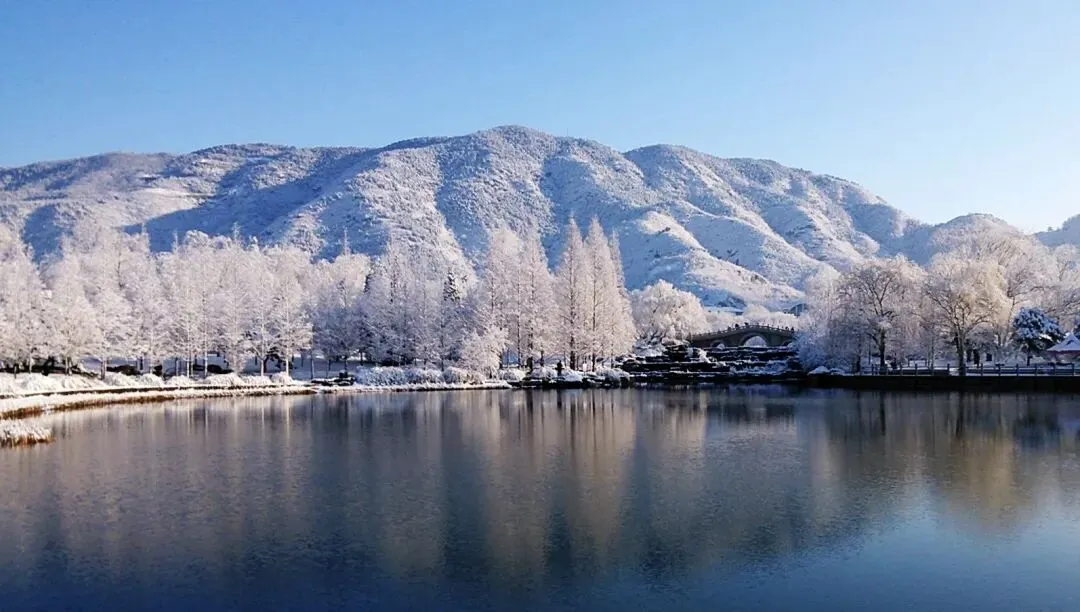 意境:冬天下完雪后,天刚刚放晴,西山的群峰全被白雪盖着,太阳一照,白茫茫的一片。