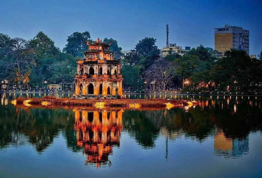 首都河内 首都河内是越南的心脏, 那么巴亭广场就是河内的标志, 地位相当于我国的天安门广场, 这里是河内节日活动、集会的重要场所。 独柱寺是越南独具一格的古迹之一, 位于河内巴亭广场西南, 因建在灵沼池中一根大石柱上而闻名, 这里供奉着送子观音,据说灵验, 因此香火十分鼎盛。 胡志明故居是近代越南领导人胡志明的旧居, 位于巴亭广场旁的主席府内, 主体建筑是一栋由德国人建的法式别墅。 还剑湖位于老街区的中心位置,是河内的地标之一, 还剑湖虽然不大,但树木环绕,湖水清澈, 湖岸边伴有笔塔、水榭等古建筑, 水中有玉山祠、栖旭桥、镇波亭等胜迹点缀, 是河内第一风景区。