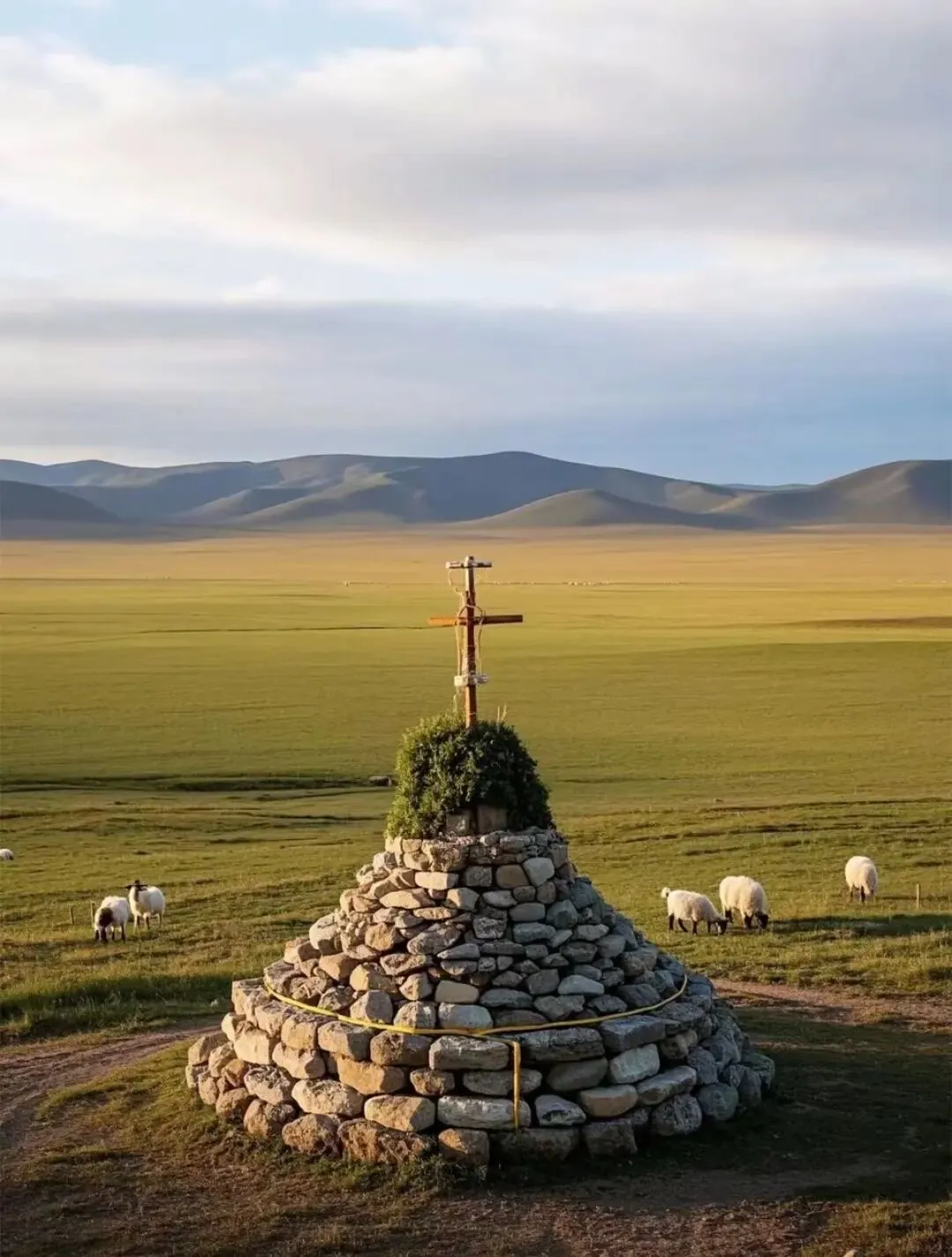 在草原高岗上,你总能看到堆满石头的敖包。很多人把它当成打卡背景,甚至往上面扔硬币。