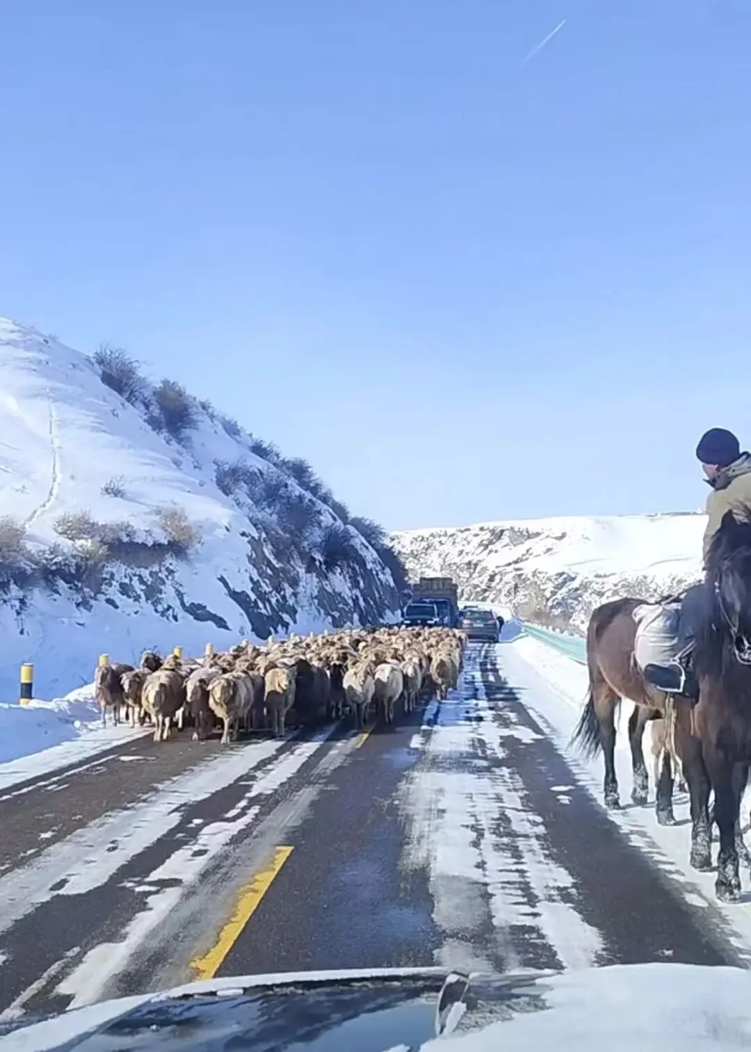 自驾的朋友,看到羊群横穿马路,千万别狂按喇叭,更别试图加速“穿插”。