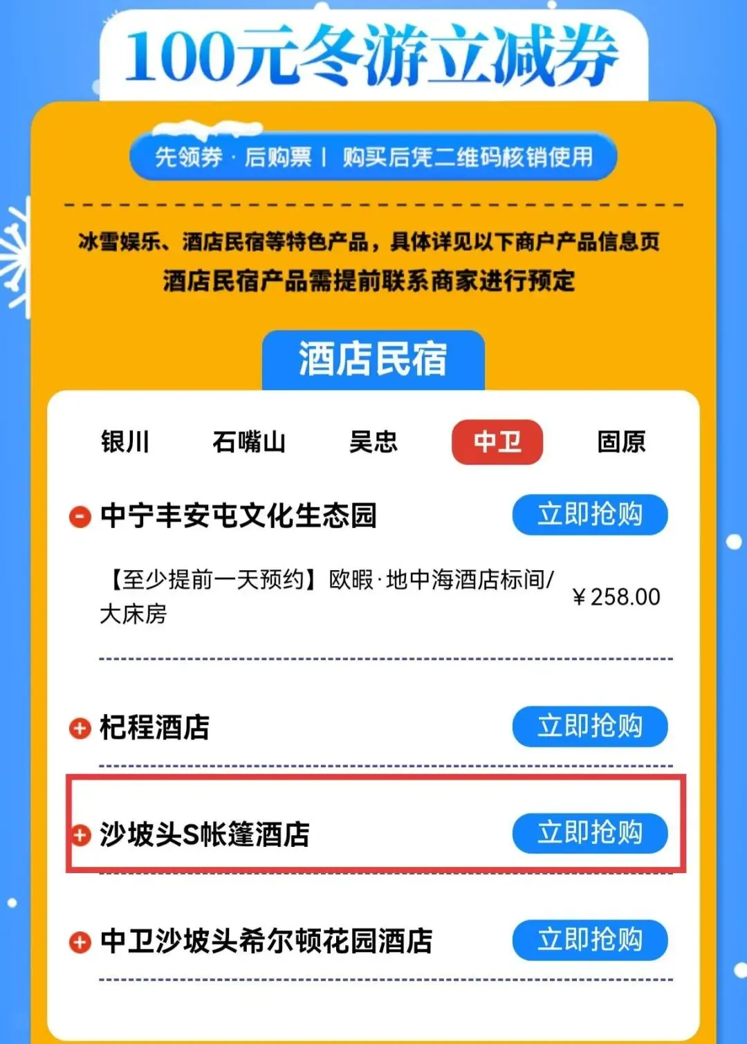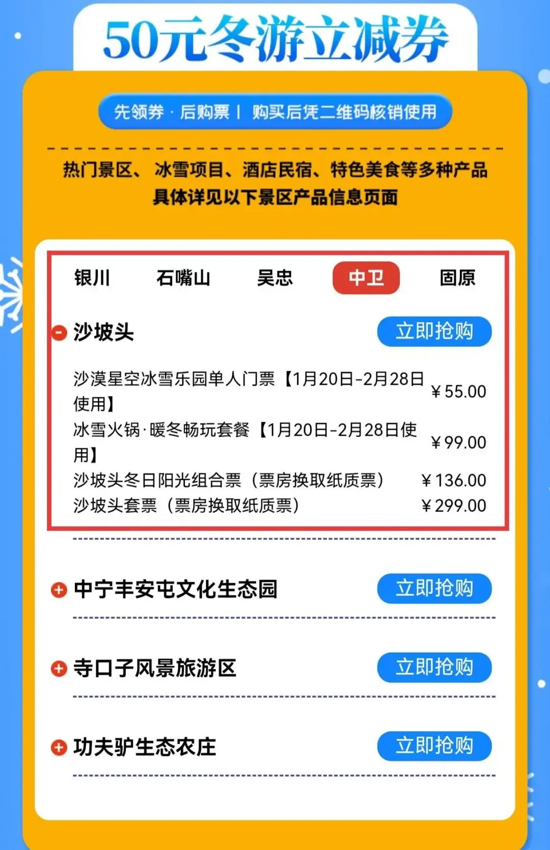 或“冬游中卫”