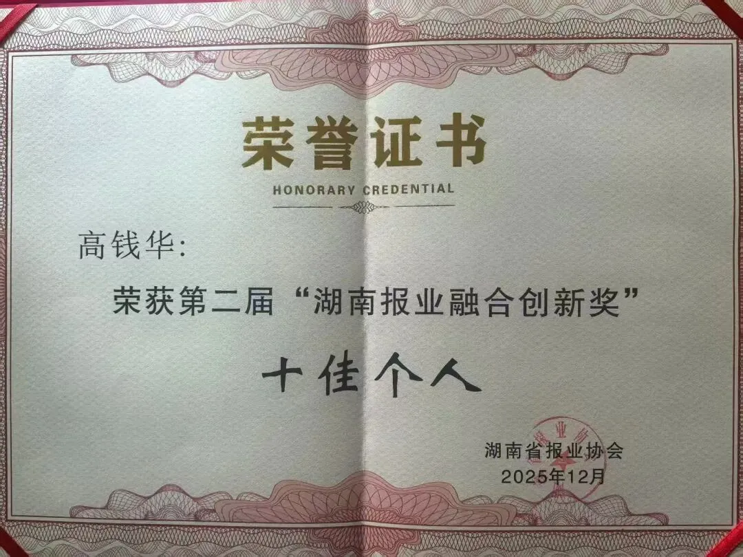 旅游与城乡规划学院优秀校友高钱华荣获第二届“湖南报业融合创新奖十佳个人”称号