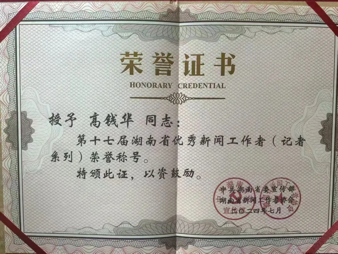高钱华自2004年大学毕业以后进入新闻行业以来,始终坚守新闻工作者的初心使命,历经张家界广播电视台多个岗位的实践锻炼,以其强烈的责任担当、敏锐的创新意识、扎实的工作作风、持续的学习能力和在平台建设、内容创新、人才培养、体制机制改革等方面的显著工作业绩,成为媒体融合创新发展的优秀代表。从业以来,获省级专业奖项80多件,其中湖南新闻奖一等奖3件、湖南省广播电视奖一等奖4件,2022年因宣传成绩突出被中共张家界市委、市政府记功,2024年获第十七届“湖南省优秀新闻工作者”称号。