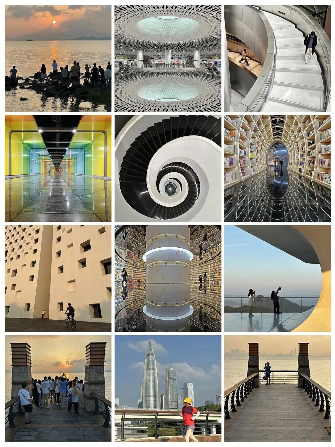 深圳小众出片“圣地”:1.深圳湾公园日出剧场(南山区)。2.云海广场(盐田区)。3.深圳市当代艺术与城市规划馆(福田区)。4.深圳大学粤海校区(南山区)。5.光明文化艺术中心(光明区)。6.愈欣书店前海印里店(南山区)。7.深圳地铁岗厦北站(福田区)。8.深圳地铁车公庙站(福田区)。