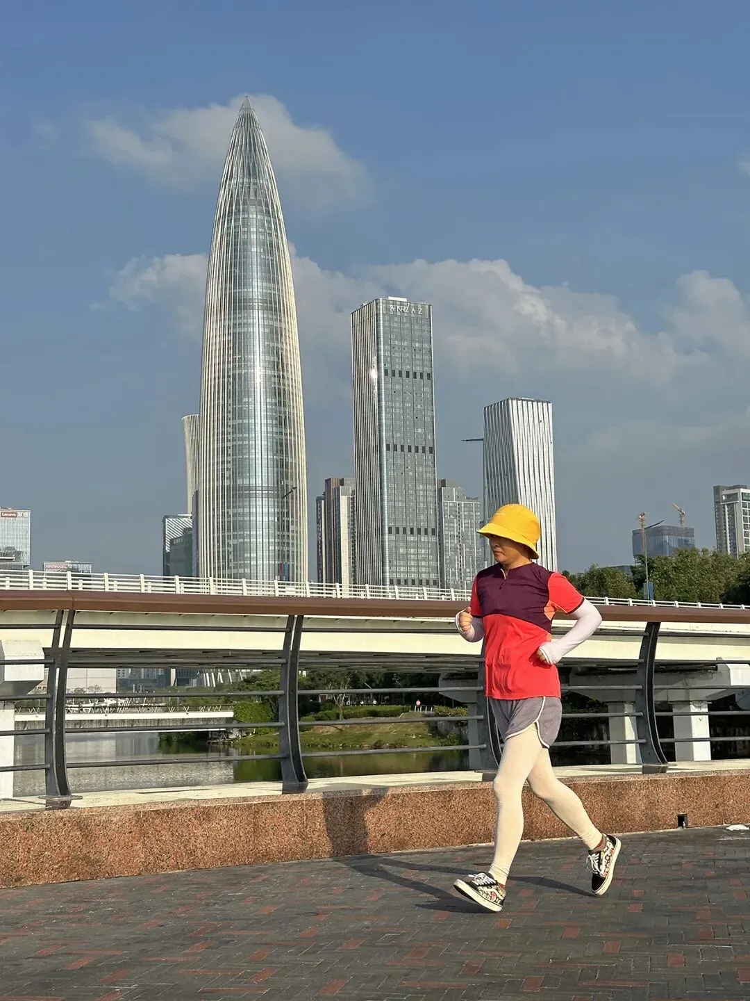 《晨跑》,使用iPhone 14 Pro Max拍摄于深圳市南山区望海路深圳湾公园,抓拍时以“春笋”为背景,画面更有意义。