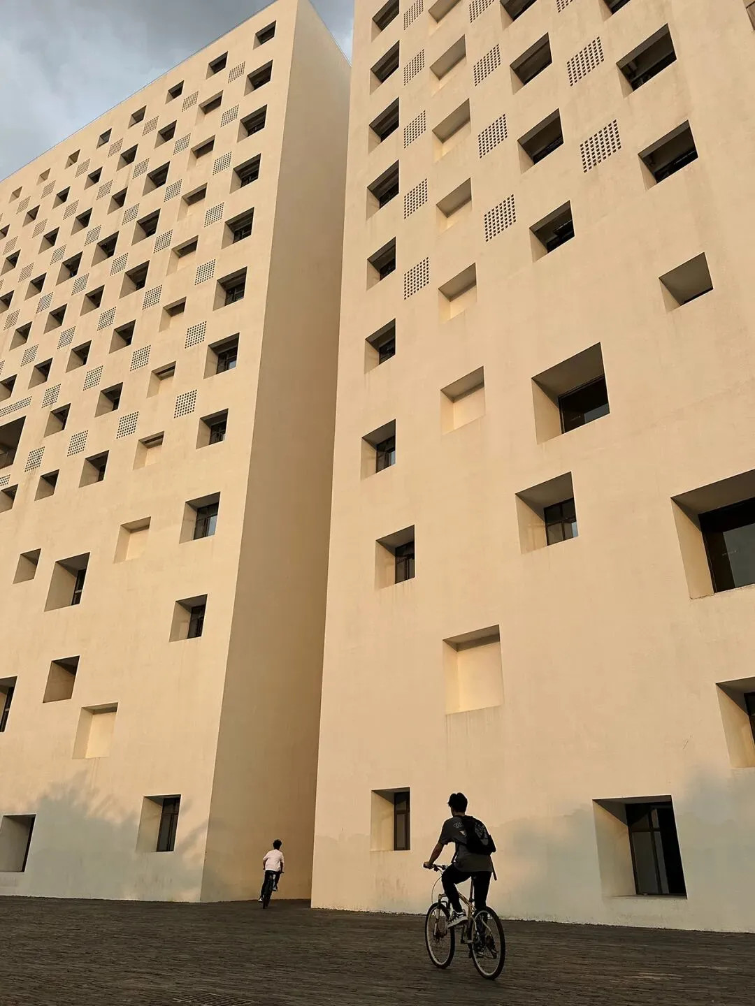 《深圳大学“洞洞楼”》,使用iPhone 14 Pro Max拍摄于深圳市南山区南海大道3688号,拍摄时点缀以骑行者,画面观感、动感更佳。作品获刊发在《人民摄影报》2025年12月24日第9版。