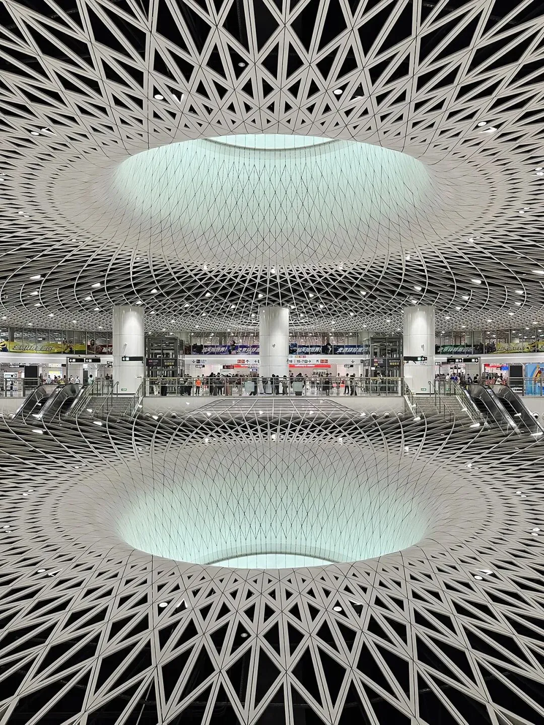 (2)除了站内中心大穹顶(“深圳之眼”),四周的小穹顶也很特别,尝试在正下方仰拍,观感非凡。