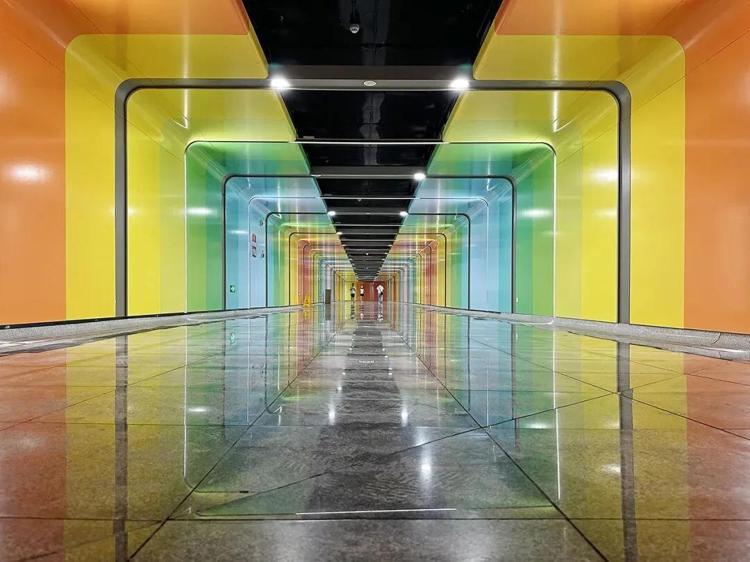 其G出入口于2024年9月30日正式启用,是一条融合了色彩与光影的“彩虹通道”,将原本单调的地下空间升级为魅力四射的艺术长廊,吸引众多市民争相前来打卡,“深圳异常city”在此具象化了。