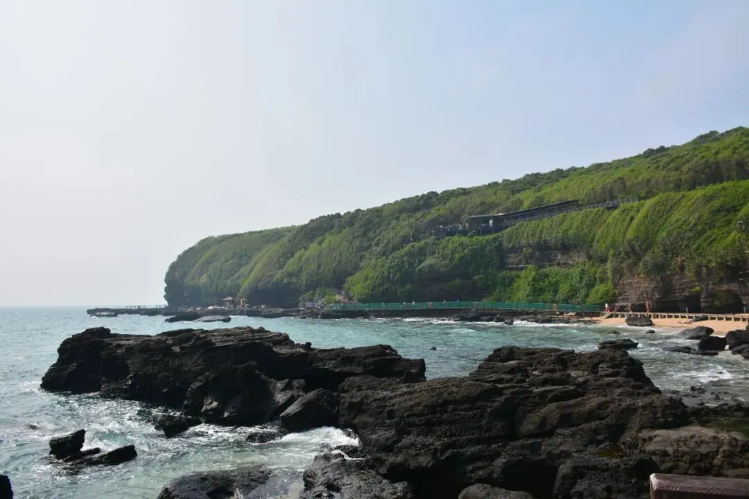 海蚀洞穴景观,藏龟洞形似乌龟探海,百兽闹海则是一组形态各异的火山岩,如群兽嬉戏于海中,栩栩如生。