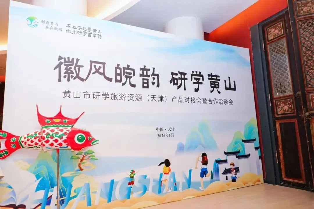1月29日,“徽风皖韵·研学黄山”黄山市研学旅游资源产品对接会暨合作洽谈会在天津市举行。本次活动由黄山市教育局、黄山市文化和旅游局联合主办,黄山市研学旅游协会承办,旨在深化黄山与天津两地教育与文旅领域交流合作,推动优质研学资源跨区域共享、研学旅游市场差异化共建。