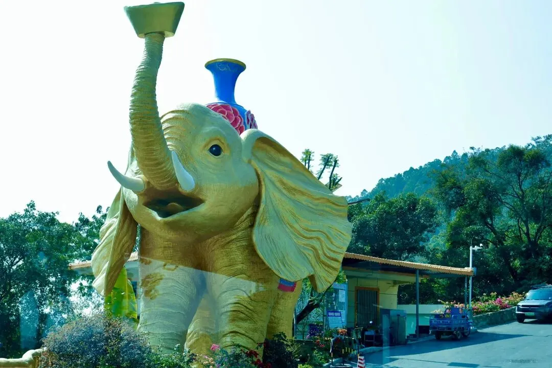 入园第一站,便与入口处气势恢宏的巨型金象雕塑相遇,先与金象合影,讨一份“万象更新”的好彩头。