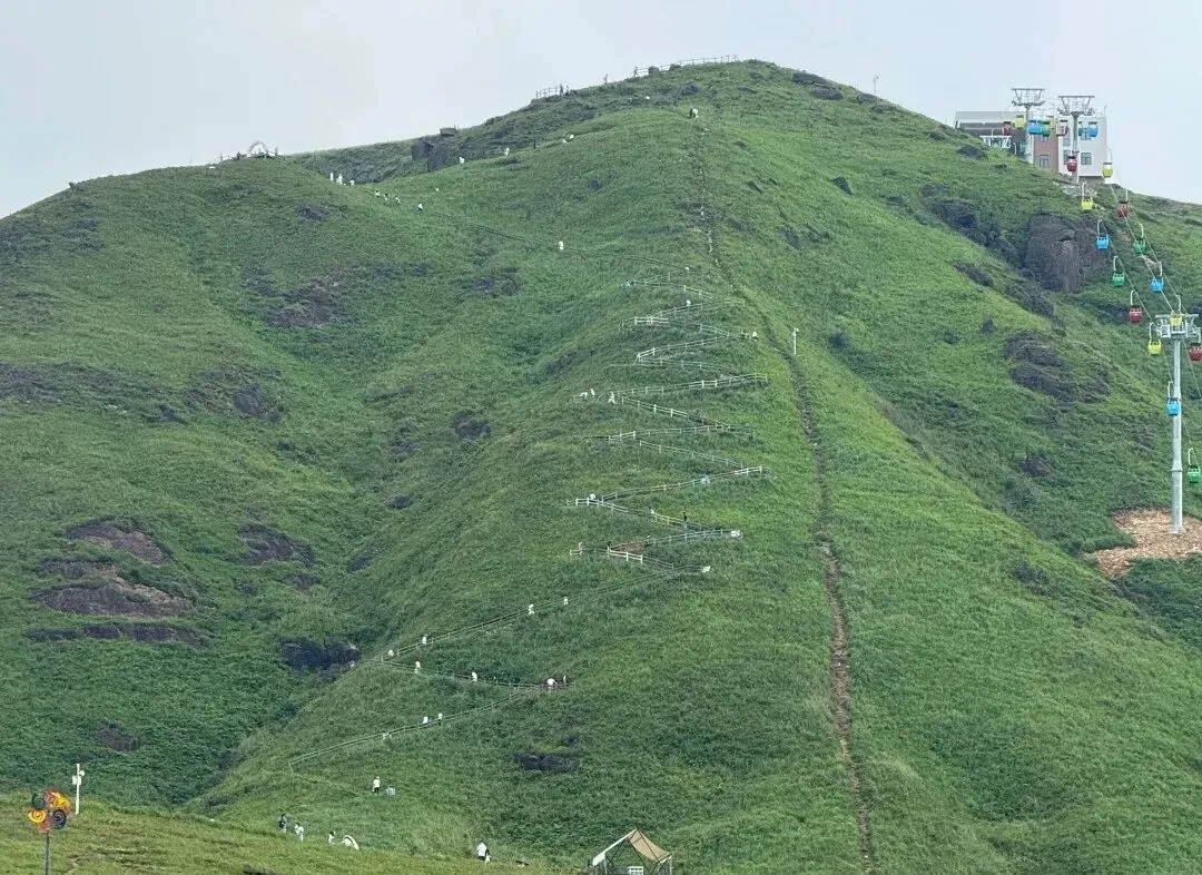 高岗草场(南方小呼伦贝尔)海拔1487 m,3000多亩天然草场,5月万亩杜鹃花海,夜里平均20℃,自带帐篷免门票,租帐篷80元/顶。景区有“牧云咖啡”敞篷车,拿铁18元/杯,随手一拍都是Windows壁纸。