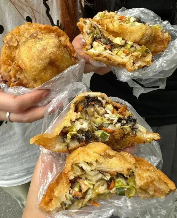 海蛎饼是用米浆裹海蛎、包菜、肉末等用油炸至金黄,外酥里嫩,海蛎鲜甜。