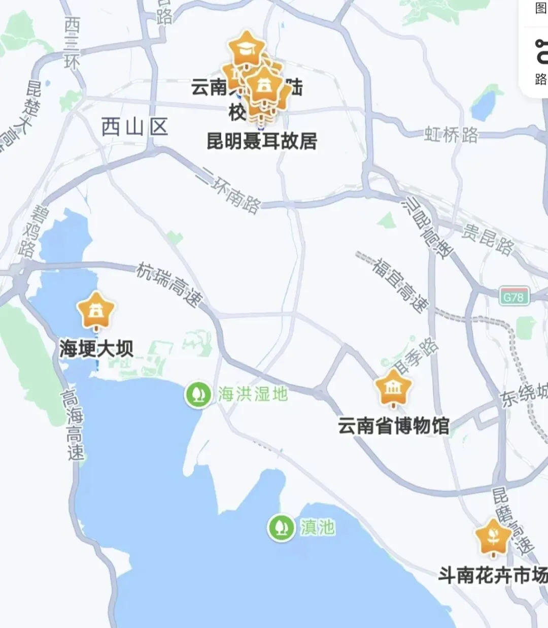 那么除了上面的城区的citywalk,海埂大坝的红嘴鸥就可以安排上,但其它时间不推荐,因为没有红嘴鸥,海埂大坝就一个普通大坝。另外像比较远的景点,比如斗南鲜花市场,和省博物馆,都可以都在你的list。