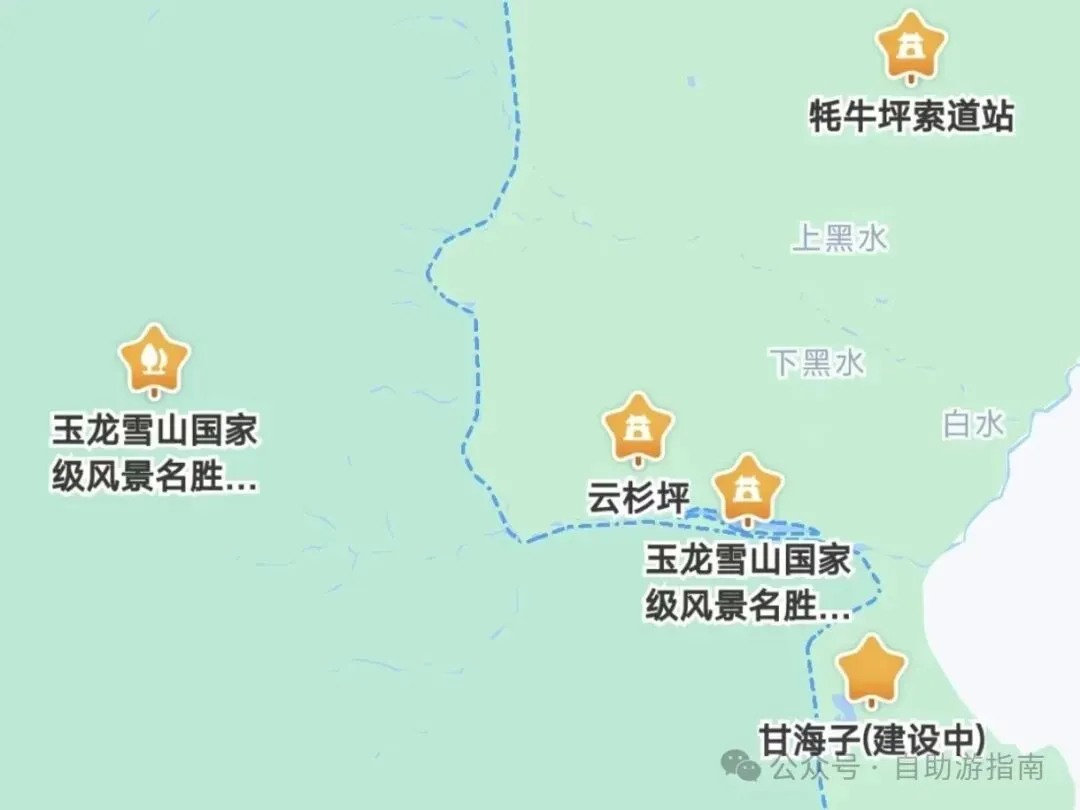 我们回到玉龙雪山,里面一共是5个景点,分别是蓝月谷和甘海子,另外冰川公园,牦牛坪和,云杉坪,后面这三个位置比较高,要坐索道。