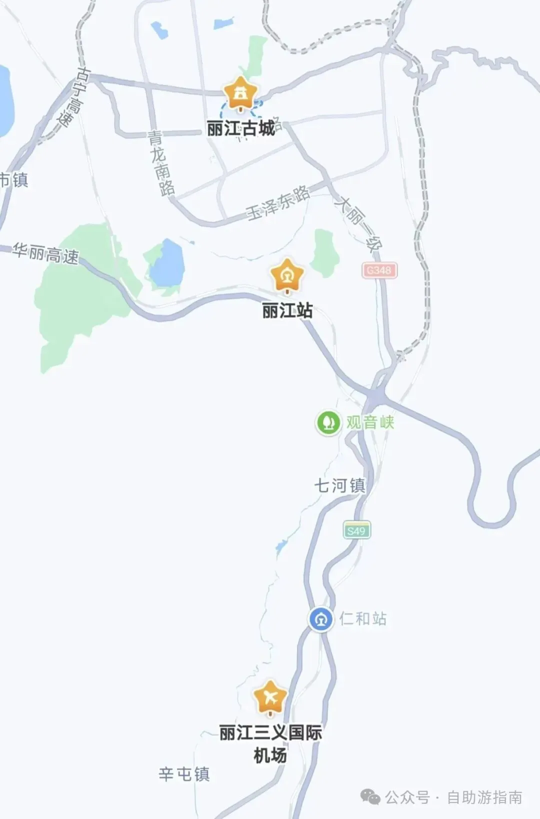 如果你飞机过来,机场距离大研古镇,是不太到30公里,有机场大巴,20人,终点站是“民航蓝天宾馆”,靠近古城南门