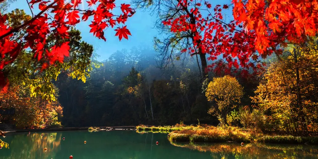 推荐理由:一湖碧水,四周青山,随着秋季的到来,青山褪去绿色,逐渐成长出喜庆的黄,夺目的红。漫步度假区,树影斑驳、层林尽染,景色别致。在这还可以畅玩碧泉河漂流、体验森林木屋、夜观满天繁星。