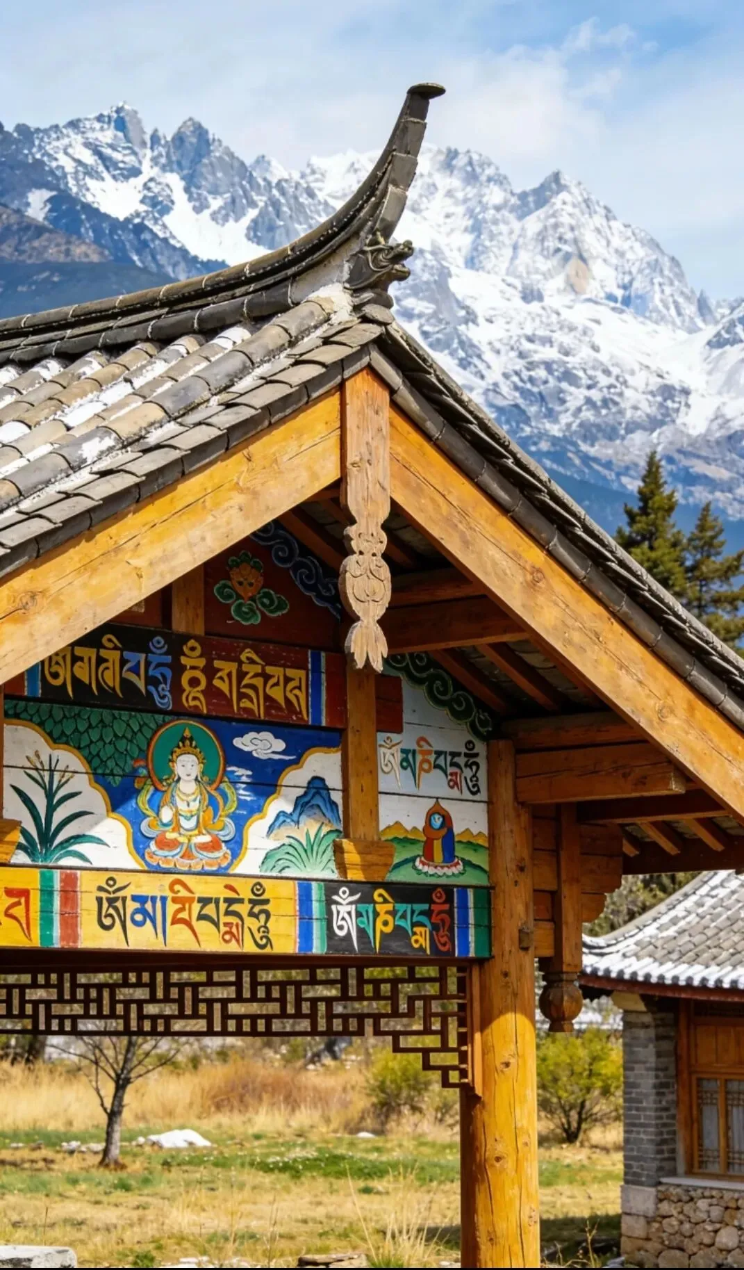 玉龙雪山周边的建筑,藏着纳西族的生活智慧与审美。核心的三多庙,是祭祀雪山神三多的圣地,木质结构古朴庄重,飞檐翘角配彩绘东巴图案,与雪山相映成趣;纳西族传统民居蛮楼、七厦楼,以冷杉为材,冰川石砌墙,屋顶挂鱼形木板,寓意年年有余,就地取材的建筑与雪域风光浑然一体;甘海子的观景木栈道、蓝月谷的亲水长廊,简约自然不破坏景致,让游客沉浸式融入雪山仙境,每一处建筑都成了风景的点缀。