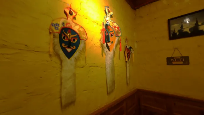 木梁彩绘、唐卡悬壁,藏香猪与石锅牦牛肉的香气中,老板娓娓道来藏戏与饮食的千年羁绊:“望果节时,人们吃着糌粑看藏戏,这是刻进骨子里的仪式感。”
