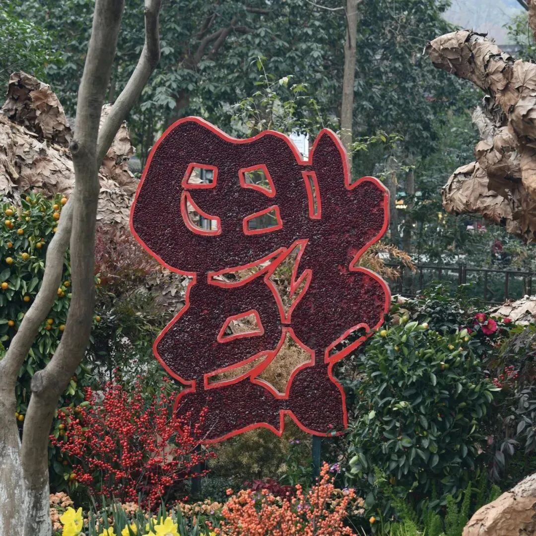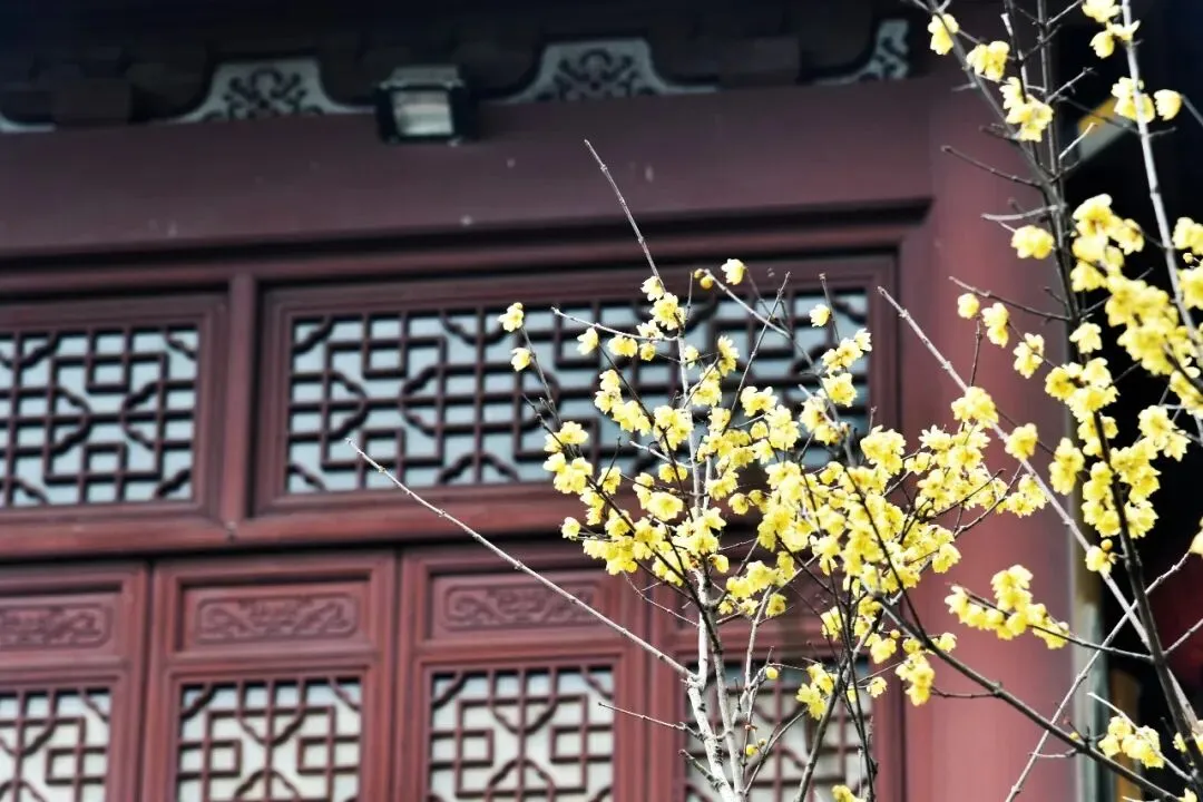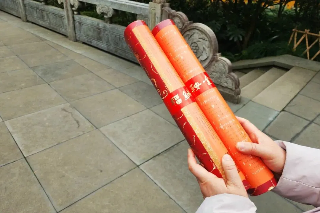 寺里的腊梅开得超旺,老远就能闻到香味。黑屋檐、黄院墙、红殿门,配着黄灿灿的腊梅,颜色超好看,拍照特别出片。大雄宝殿前立着的大红福字,好多人在这儿合影,都想把福气带回家。我跟爱人说,听说永福寺里有一百个福字,不知道是不是真的。爱人说:“寺里这么多灯笼,每个灯笼八个面,光四个面就有四个福字,肯定够一百个了。”