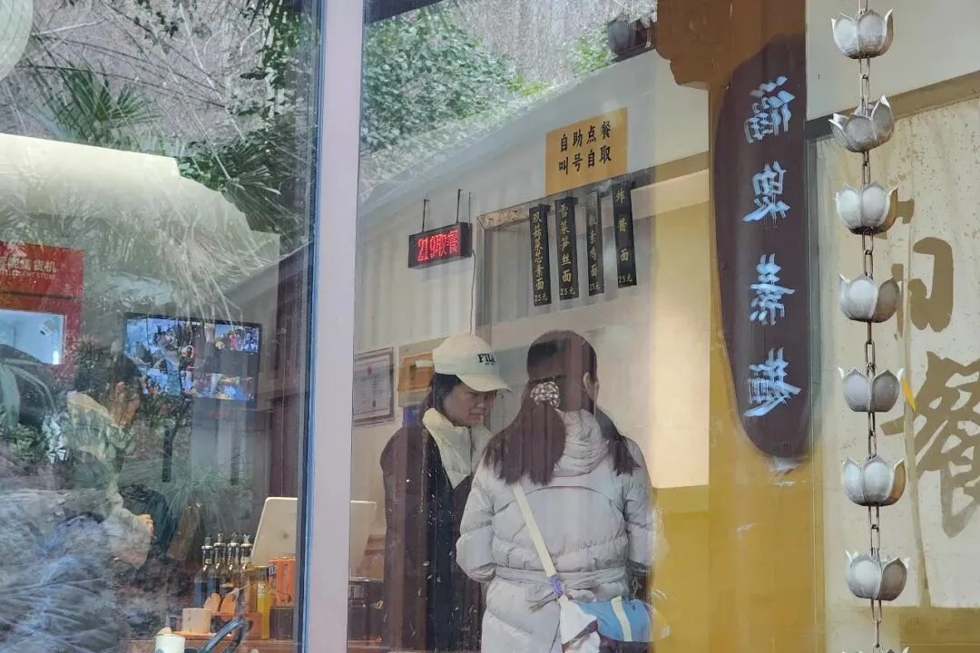 走回观音殿,有义工在此发新年日历和福字,我们也上去领了,要把永福寺的福气请回家。大门附近有个 “福泉素面”餐馆,人超多,刚好到午饭点,我们就决定在这儿吃碗素面再走。吃面的人虽多,但大家吃得都快,没等多久就有座位了。素面就四种,都是 25 元一碗。我四周仔细查看,没看到有“免费加面”的提示,估计不是担心你吃不饱,而是怕你占座位太久,其他人就没地方吃面。