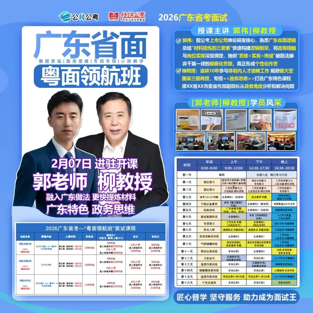广东公转公考以服务为核心,将专业与个性指导完美融合,考粤教粤先懂粤,精准把握广东考情,为学员提供专业授课。