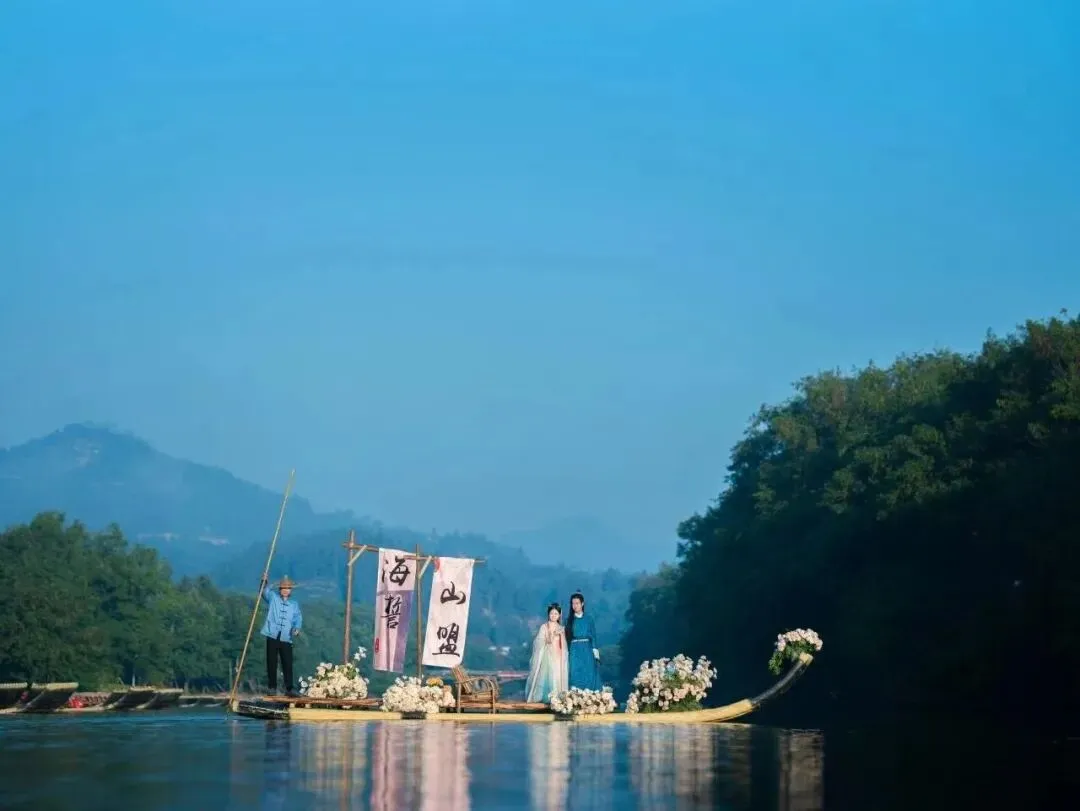 夏之初,完全享受阳光的温度,带上爱人乘坐竹筏,悠悠漂流于九曲溪上,溪水清澈见底,波光粼粼,宛如一条碧绿的丝带,轻轻环绕着武夷山的巍峨。竹筏轻摇,随着水流缓缓前行,仿佛整个世界都慢了下来。两岸,是陡峭的山崖与葱郁的林木,它们在水中投下斑驳的影子,与蓝天白云一同倒映在水中,让这幅绝美的山水画成为彼此间难忘的回忆。