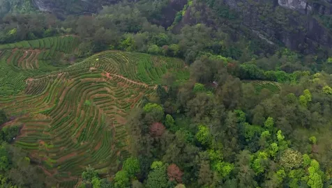 由九曲溪十八弯串起的三十六峰,和坑涧幽谷中的一片片茶园相连,星罗棋布的摩崖石刻群点缀其间,见证这方山水的岁岁年年。