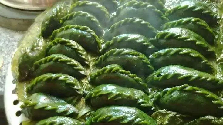 又名鼠曲粿,鼠曲粿油亮碧绿,香软可口,食之有浓厚艾草味,是武夷山的特色节令食品,历史悠久。取适量做好的鼠曲粿,将其如擀饺子皮般擀平擀薄,包上香菇、笋丝、芋头丝、腌菜等制成的馅,制成绿色的大饺子。如今,清明粿已不再只是节令食品,在武夷山市区大街小巷都可见到这道小吃。