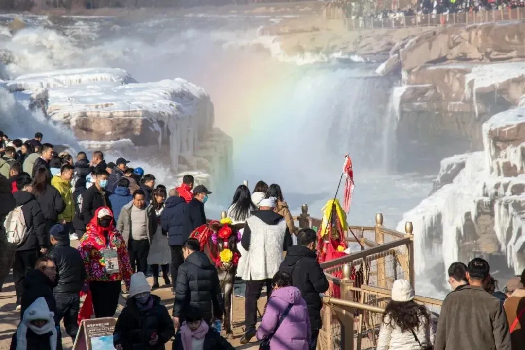 春节期间,亲临延安宜川的黄河壶口瀑布,感受大自然磅礴力量。此时正值黄河凌汛期,壶口水量依然丰沛。从上游裹挟而下的巨大冰凌在瀑布处碰撞、坠落,声如雷鸣,激起漫天翻腾的水雾,在阳光下常幻化出绚丽彩虹。两岸岩壁上,悬挂着层层叠叠、形状各异的冰挂与冰柱,形成壮观的“冰瀑玉壶”奇景。