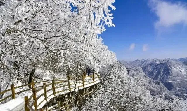 位于汉中的龙头山兼具冰雪与云海,春节来这里开启一段如临仙境的冰雪之旅。乘坐索道与云梯轻松直达山巅。这里极易形成壮观的云海与雾凇景观,茫茫云涛在山谷间翻滚,玉树琼枝晶莹剔透,宛如置身于童话般的云端仙境。